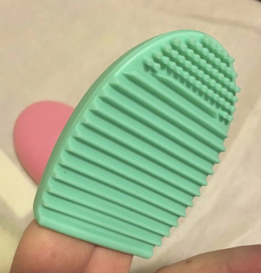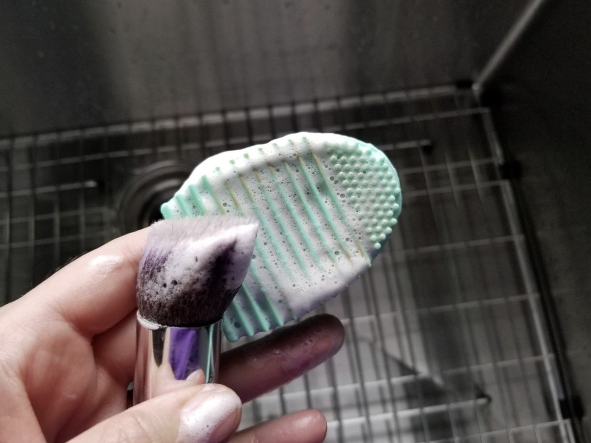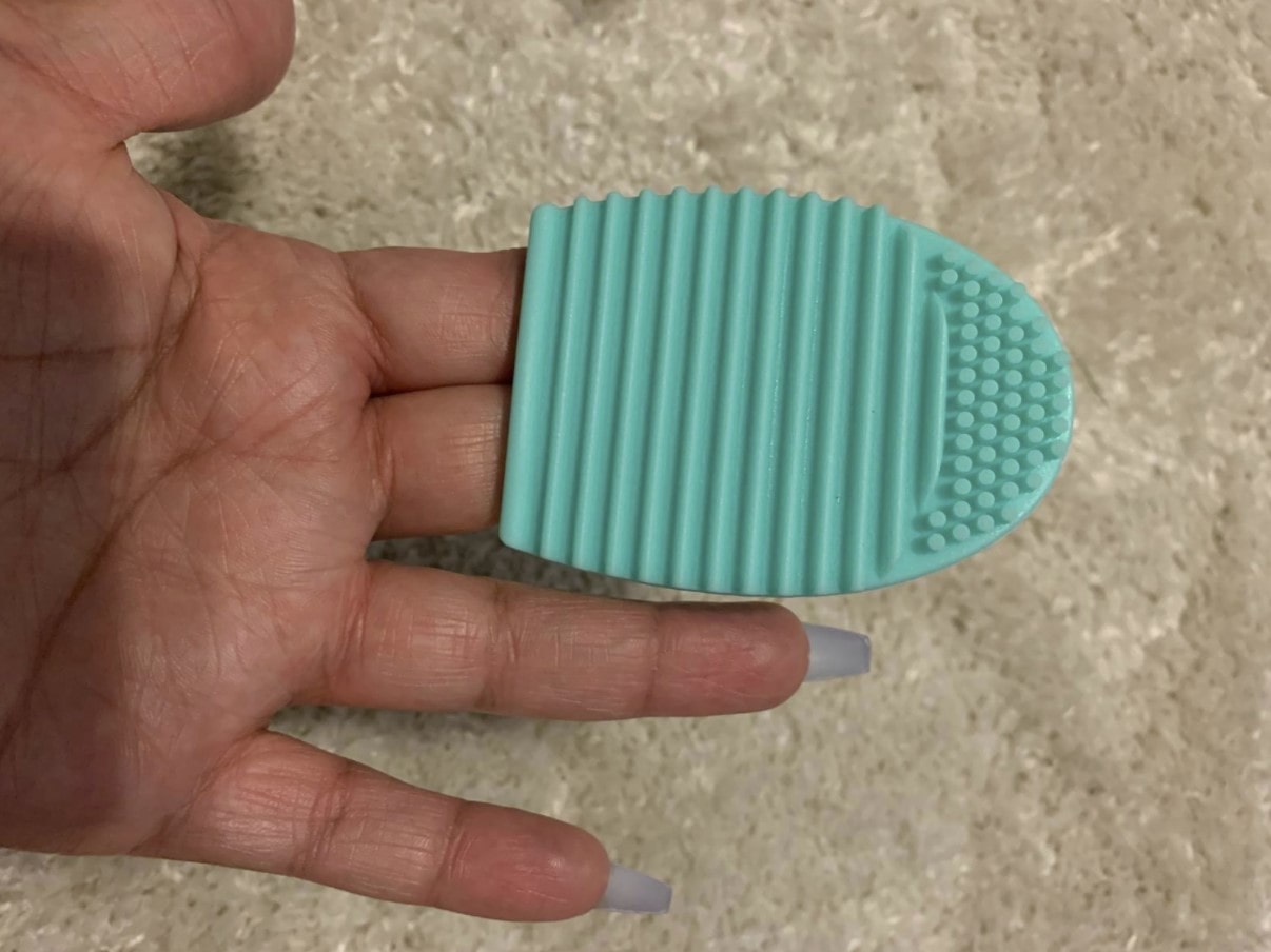 This is great! It’s like a washboard for your makeup brushes. I just washed mine and they are almost like new again. I used to just wet them, soak them in a small cup with water and dish soap, and then I’d have to rub rub rub forever on a cloth or paper towel. This was so fast.