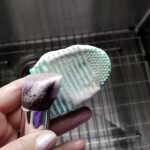 This brush scrubby is amazing. I debated on whether to get the large or small size, but I’m glad I got the large (3 finger) size. The extra surface area is nice for my large brushes, and I like the defined areas that this has (the lines and dots). It stays on my fingers nicely, and it is thick and feels like a great quality. I’ve seen similar products at Sephora for much more money, but these work amazing.