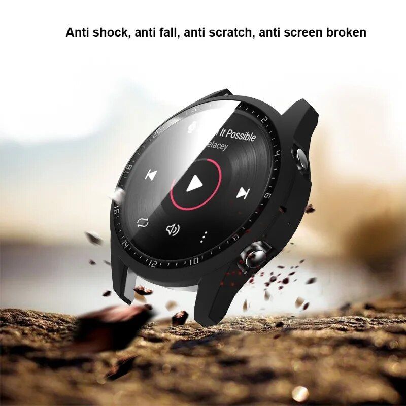 Protect your smartwatch with the ultimate shield – the Full Coverage Tempered Glass Screen Protector Case designed specifically for the Watch GT2 46mm. With its full coverage design, this case provides an impenetrable barrier against scratches, impacts, and everyday wear and tear, ensuring your watch remains in pristine condition. Its sleek and transparent appearance not only offers superior protection but also complements the elegant design of your device.