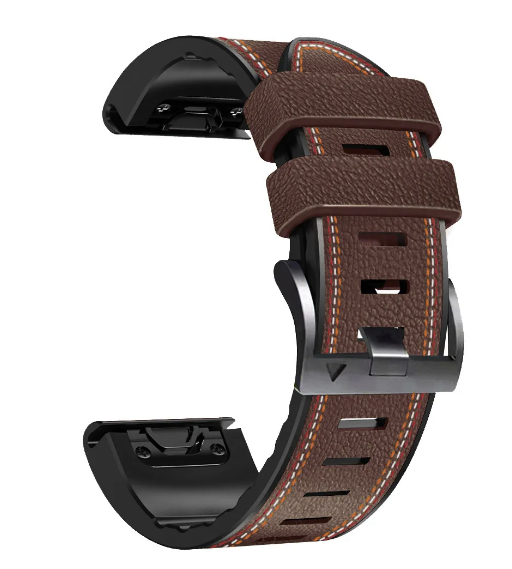 Elevate your Garmin Fenix experience with a watch strap that blends comfort with sophistication. Our QuickFit Leather & Silicone Strap is designed for the Garmin enthusiast who seeks both style and durability. The unique combination of premium leather and soft silicone offers a versatile accessory that’s perfect for any occasion. Whether you’re hitting the trails or attending a business meeting, this strap keeps your smartwatch secure and stylish.