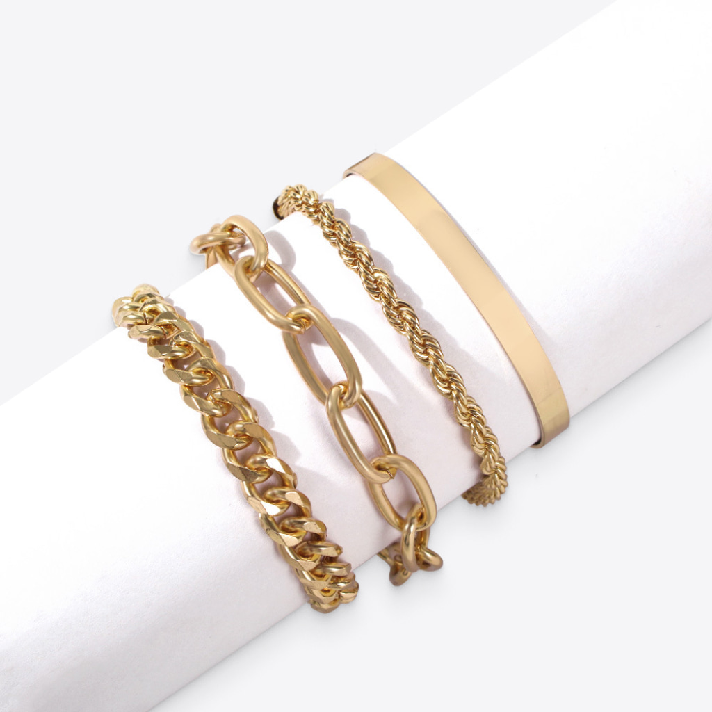 Made with layered looks in mind, this Trendy Set of four bracelets has mixed styles and textures for a glamorous effect.