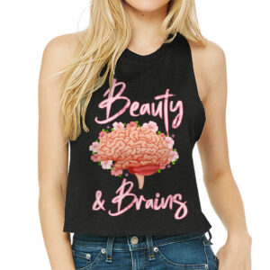 Beauty and Brains Racerback Cropped Tank – Floral Women’s Tank – Illustration Tank Top